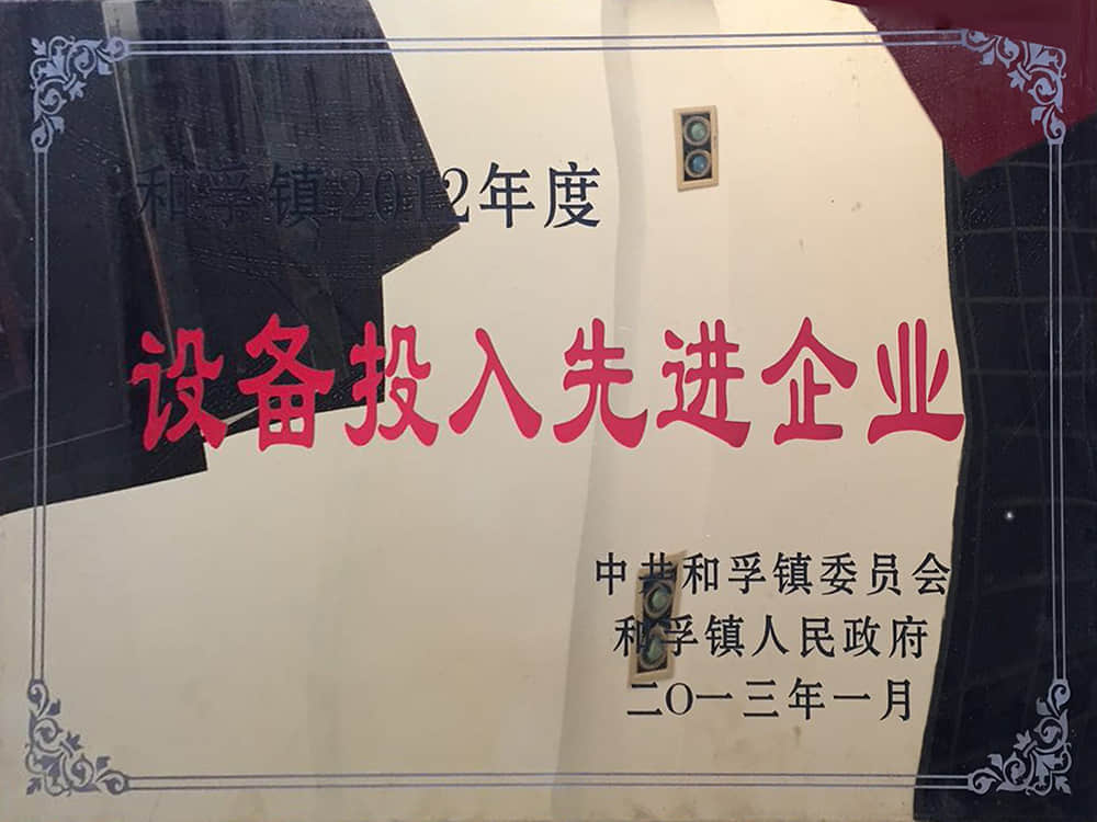 2012和孚鎮(zhèn)年度設(shè)備投入先進(jìn)企業(yè)