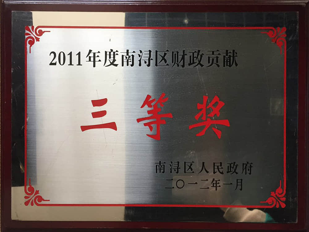 2011年南潯區(qū)財(cái)政貢獻(xiàn)獎(jiǎng)三等獎(jiǎng)